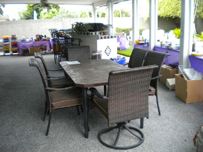 Packed house in Orange - just around the corner from the Antique Circle in the City of Orange. Rubbermaid Storage Cabinet Patio Set with six chairs Wood picnic table with benches Outdoor pool loungers Brunswick Pool table (excellent condition) Table Saw Work bench Metal storage cabinets Bookcases Kenmore Freezer Twin beds with frame Children's bedroom furniture Small oval dining table with chairs Small China Cabinet Kitchen table with chairs Huge selection of Collector Plates Game table with leather chairs Oil paintings Lots of outdoor decor Craft paint and supplies Picnic and party supplies Glassware and silverplate Small safe Shotgun Reloader...