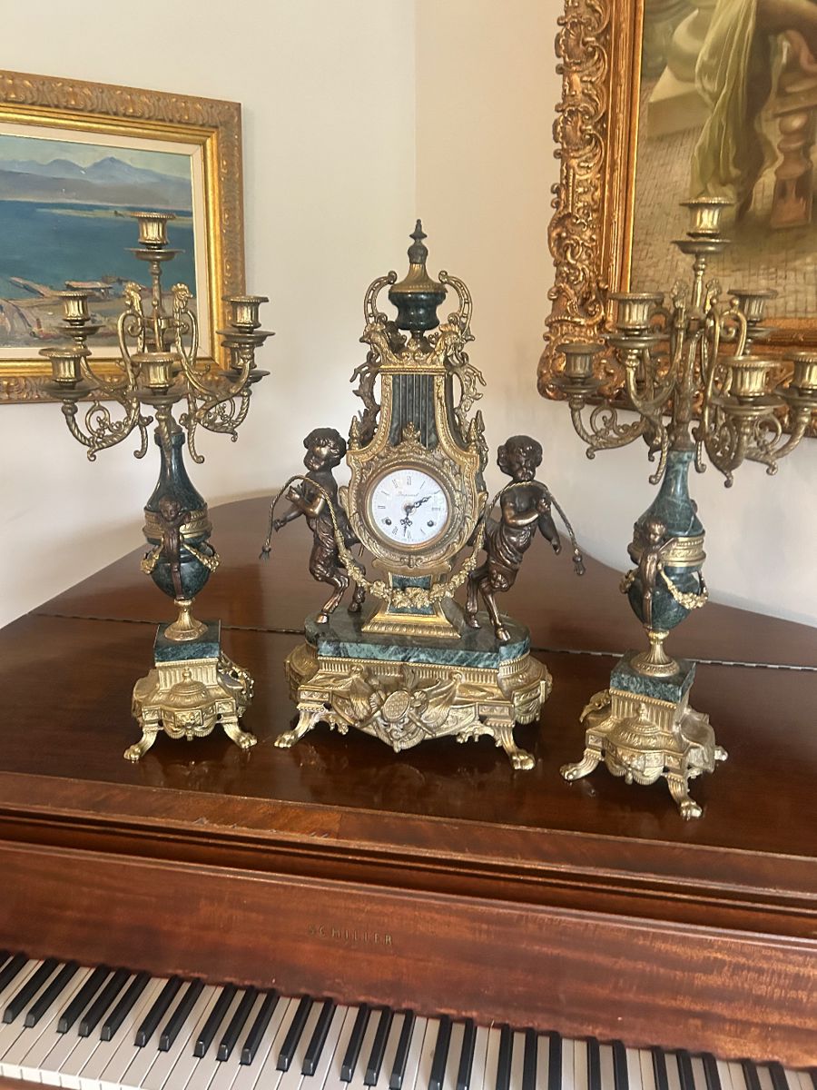 - Imperial Italian Mantle clock with matching marble candle stick holders
