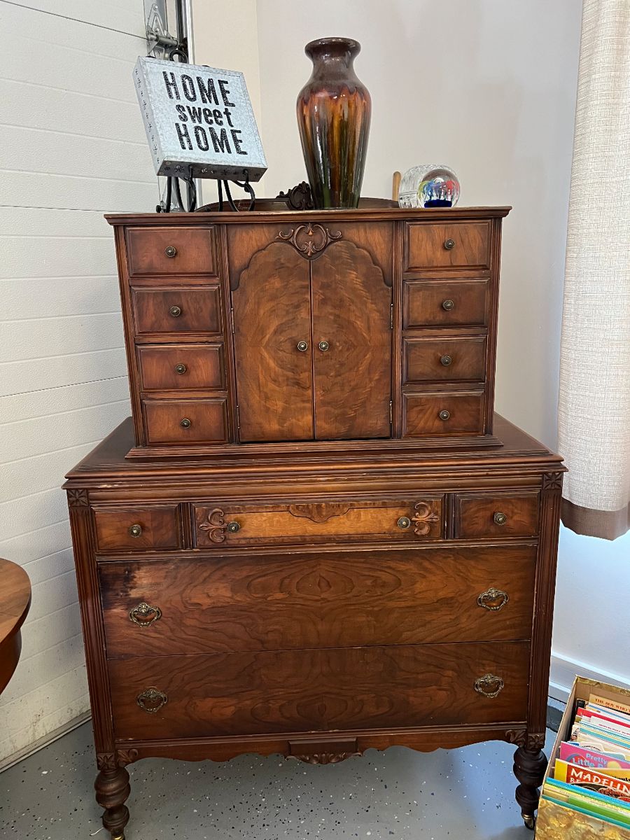 End tables lamps Nortiake China brass an glass shelf king size headboard and footboard ,Christmas decor kitchen items high chair playpen toys books . Inversion table an treadmill .