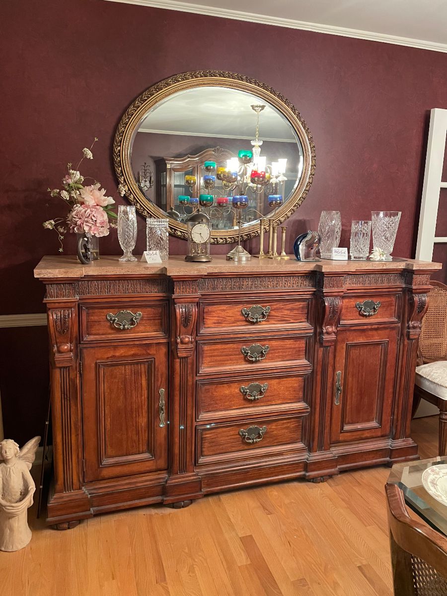 Estate Sale filled with quality Furniture, Waterford Crystal, Artwork, Collectibles, Lamps, Rugs, Jewelry, Christmas, Garden, Tools. Stickley French style Loveseat, beautiful Labarge Coffee Table, Ethen Allen Loveseat, Thomasville Bedroom Furniture consisting of Dressers, night stands, Queen size Bed, Hickory and White Marble top Carved Server, Curio Cabinet, Desks, Carved Lamp Stands, Dining Table with 6 Chairs, all types of beautiful Lamps- some Waterford, Pr. tall Chinese Vases. Sevres and Champleve Portrait Vase, Bronze and Champleve Liberty Sculpture, Minton "Persian Rose" Dinnerware, service 8 plus, Lenox "Winter Greetings" Dinnerware, service 12 plus. Lots of Waterford Crystal Stemware- goblets, wines, old fashion,...