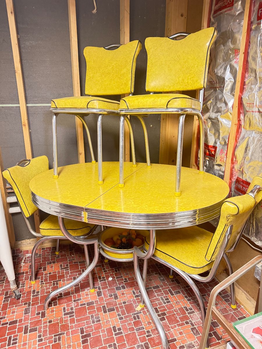 This sale this totally packed with awesome stuff! We can’t wait to have to you as guests at our sale this weekend! Retro yellow Formica & chrome dining set (Good condition, no major tears, a few spots where seams are separated.) Maytag washer & dryer Whiskey diamond pattern barrel furniture Maurice Burke chair Vintage slat coffee bench Vintage Huffy liquidator 3 shifter bike Lots of knifes Case xx knifes Schrade Old timer & etc. Silver coins (quarters, dimes Peace & Morgan dollars, proof sets etc.) Longaberger collection SOOO MUCH MORE!!! GUNS - Waffenbrik Mauser A-G Oberdornfan 7.65 (Good condition) Harrington...