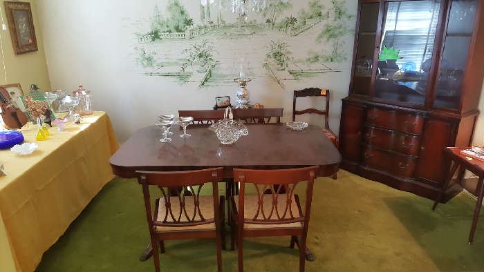 Partial List: Mahogany 1940's-50's Bedroom Furniture, Assorted Tables, China Cabinet, Drop-Front Desk, Vintage Chrome Kitchen Table & 4 Chairs, Wicker Style Sofas, Clocks, Crank Record Player, Iron-Ware, Vintage Typewriters, Vintage Televisions, Old Toys, Prints, Costume Jewelry, Garage & Kitchen Items, Fun Stuff!