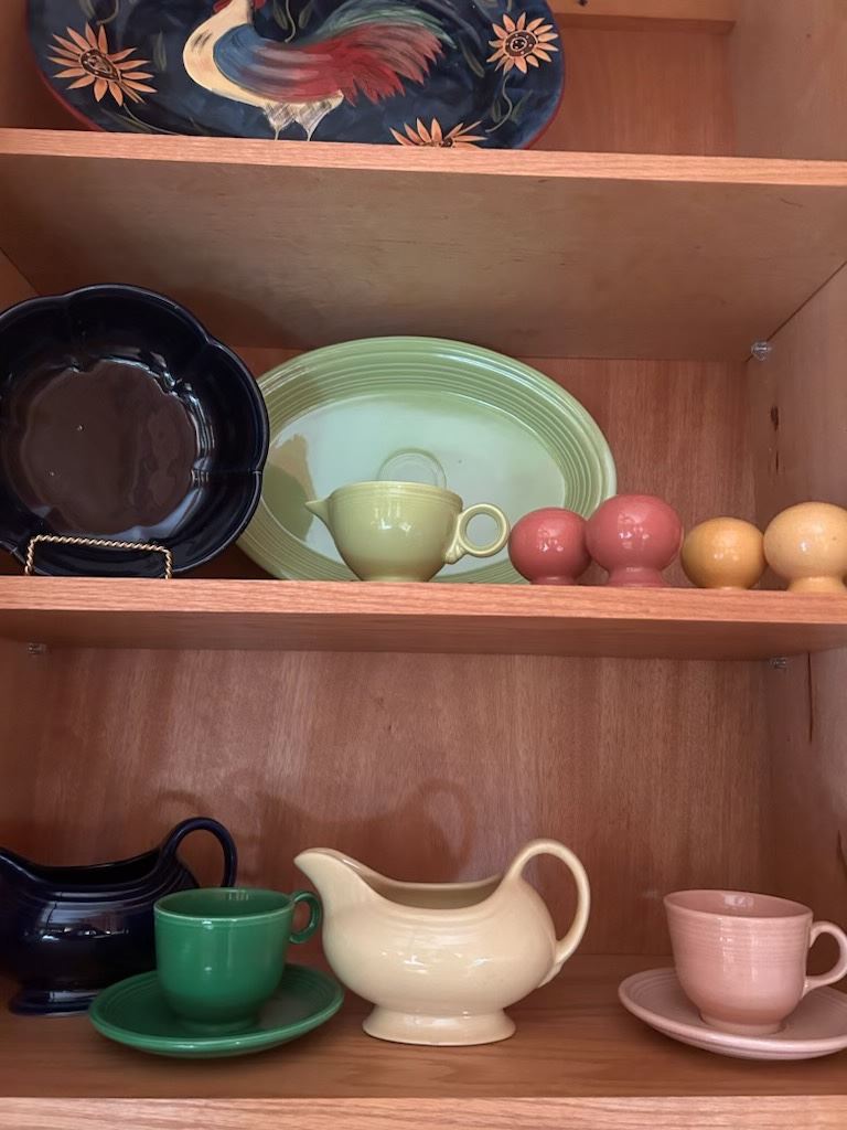 Estate type sell with much antique glassware, furniture, clothes, and outside items.