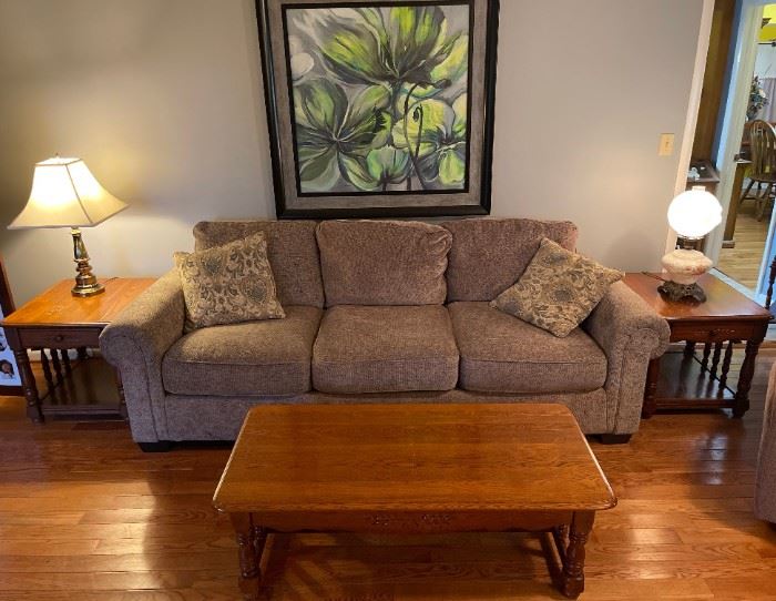 3 bedroom suites, Whirlpool refrigerator, Lift chair, Dining room table with 8 chairs, China cabinet, Kitchen table with 4 chairs, Sofa & loveseat, Overstuffed chair, Recliner, Roll top desk, Cedar chest, Multiple televisions, China, Cookware, Glassware, Men’s clothing (medium & large), Shoes, Compressor, Coffee table and end tables, Lamps, Christmas decorations, Albums, Record player, Antique washboards, Selection of Pyrex, Selection of Barbie dolls (in the box), Sewing machine, Whirlpool washer and dryer, Double rocker, Outdoor patio furniture, Large selection of flower pots, small hand tools, Air compressor,