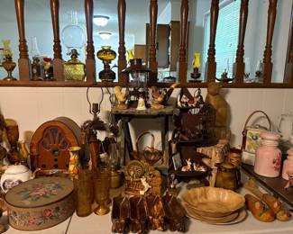 OIL LAMPS, vintage toys, coca-cola, vintage glassware and a utility trailer!