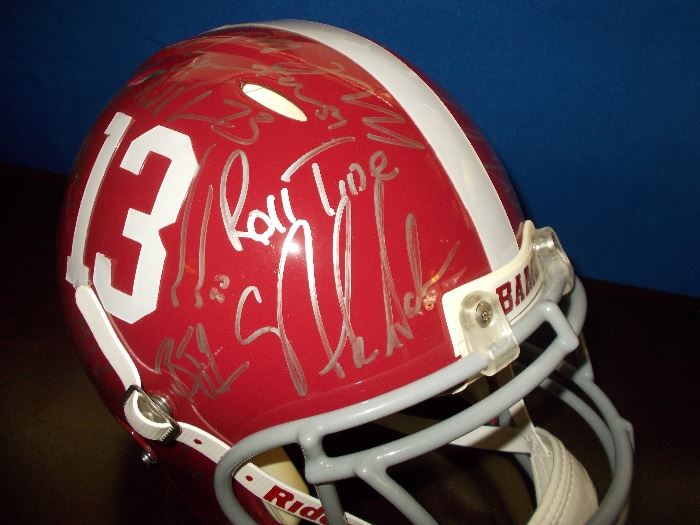 Fabulous Sports Collectors Sale!!!!! 48 Autographed Footballs Alabama : Mark Ingram,Dont'a Hightower, Trent Richardson, Shawn Alexander, Roman Harper,and More Auburn : T. Seikes, Heath Evvansm Tippet, Ronnie Brown, Cad Williams, Karlos Dansby, and More Great Pro Players : Too many to list 16 Autographed Full Size Helmets including the 2013 National Championship with Saban's Autograph and the Team's Daniel Moore Artists Proof and Prints Autographed Jerseys "Old Lace" by Towle Sterling Silver Jewelry Temper-Pedic Full Size Bed Wardrobe Dresser Full Size Spool Bed Cream Color Leather Sofa Deacon's Bench Gun Cabinet Mahogany DR Table and Chairs Mahogany Buffet Sofa Coffee...