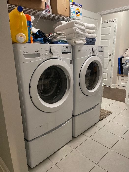 Brand new LG front load washer and dryer with bases