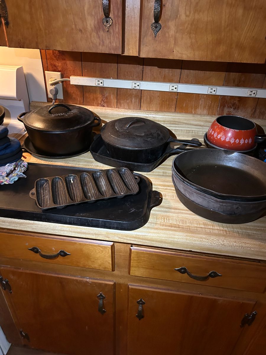 Dining room table & chairs, China cabinet, cast iron, JHL pottery, other pottery, lots and lots of Avon bottles, vintage China, Pyrex, Corning ware, small appliances, bedroom suites, vintage iron bed, lamps, pictures, mirrors, sewing machine, material, metal vintage Tonka trucks , vintage Hoosier cabinet, collectible jars, cast iron, bedding, jewelry, tools, wood, saws, stepping stones, blocks, bricks, and so much more.