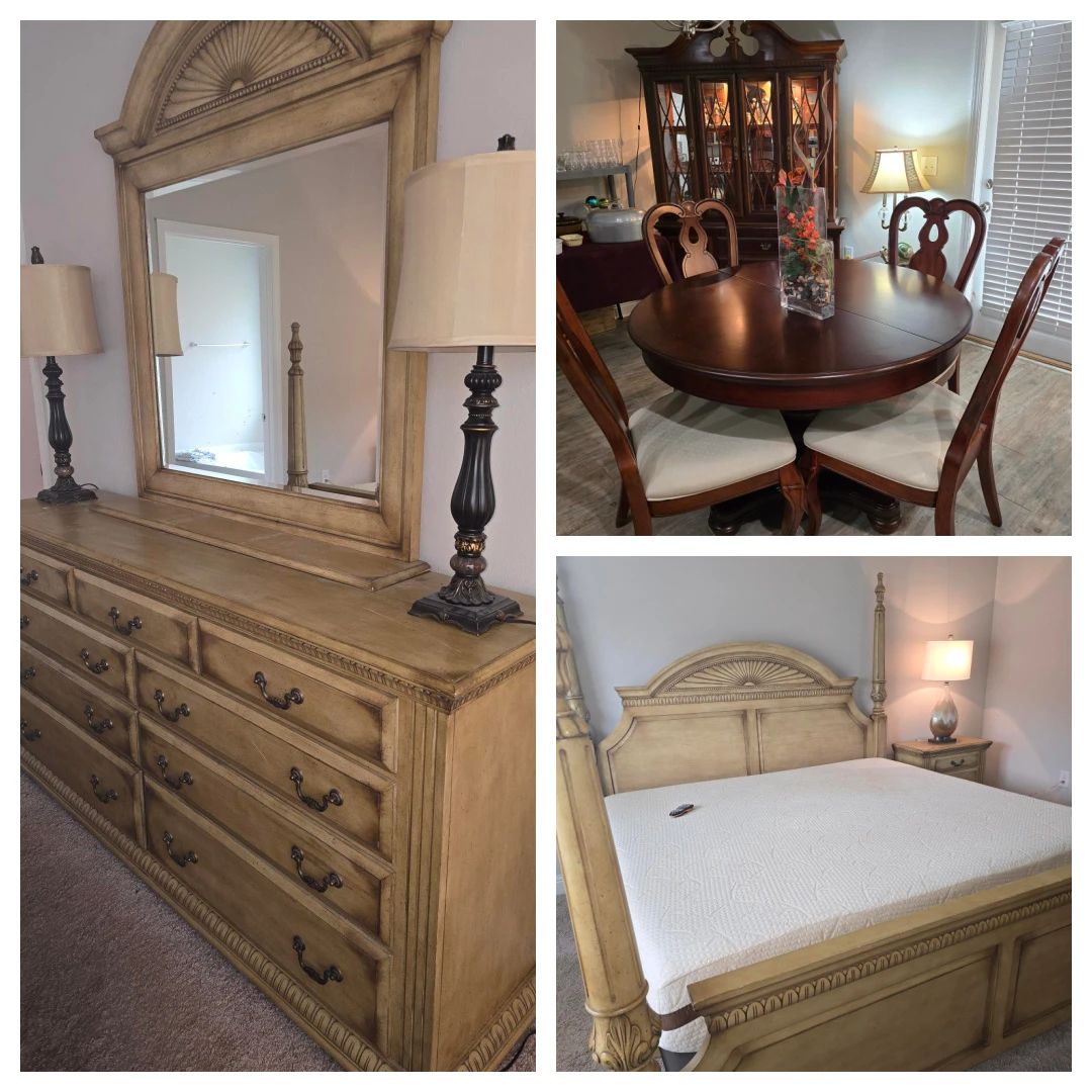"Home for the Holidays" Estate Sale November 7, 8 & 9, 2024 Beautiful home with well equipped kitchen Stylish & well appointed furniture Corning Ware Magnalite Roaster All Clad Cookware Collectibles Cherry Round Dining Table with 18" leaf & 4 Chairs Cherry Hutch Excellent Condition Rattan Round Table, Glasstop & 4 Chairs Julian Nyland King Size Bed with Bamboo Memory Foam Mattress & Rise Wireless Electric Bed With matching Julian Nyland Triple Dresser & Mirror & Night Stand 2 Rattan Bar Chairs in excellent condition Superb Linens, King Size & Queen Excellent Condition: Towels, King Size Quilt Sets, Sheets and...