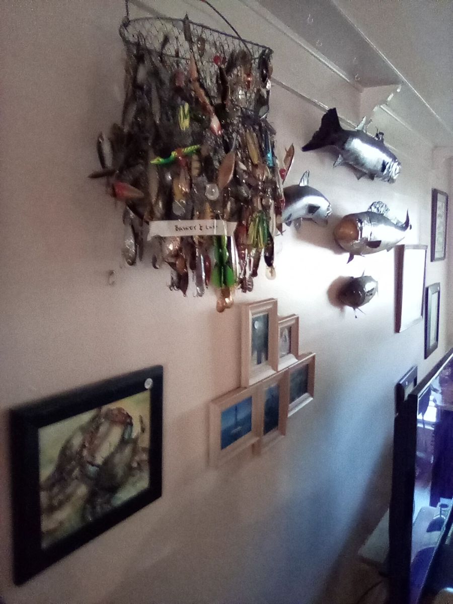 Sale consists of years of old fishing equipment, rods, reels, lures, oars paddles, anchors, mounts , large bronze propellers, metal tackle boxes some furniture. Old ships chain. Cash sale only