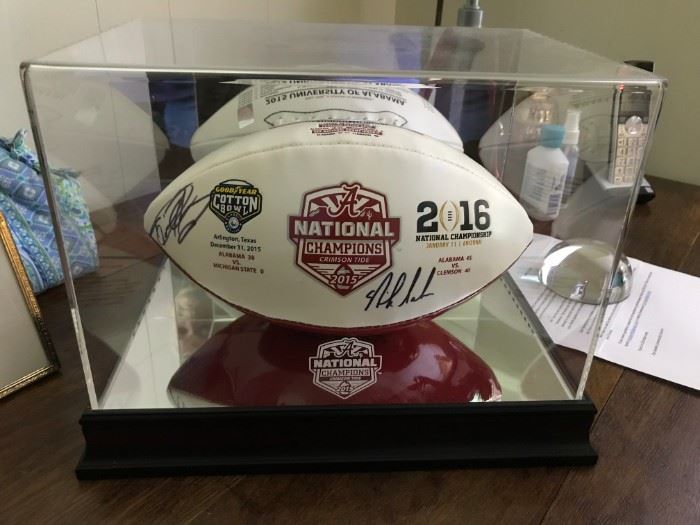 THE ESTATE OF HOWARD FULLER. Look long and look hard. This will be a great 1 day sale. Only 30 minutes east of Meridian off I-20 . Tools and farm equipment galore. Bama Collectibles, antiques, and so much more. Take A Look. Encased 2016 Alabama National Championship Football signed by Nick Saban, 2009 Alabama National Championship Football, Alabama Football signed by Mike Shula, Ceramic Alabama Beer Steins (x2), Handmade Masonic walking sticks, Decorative whiskey decanter, treadmill, Vintage Wooden mantle, Vintage cane seat rocking chair, handmade quilts, stainless steel pots and pans, steam cleaner, handmade knives, antique ceramic jugs, hope chest,...