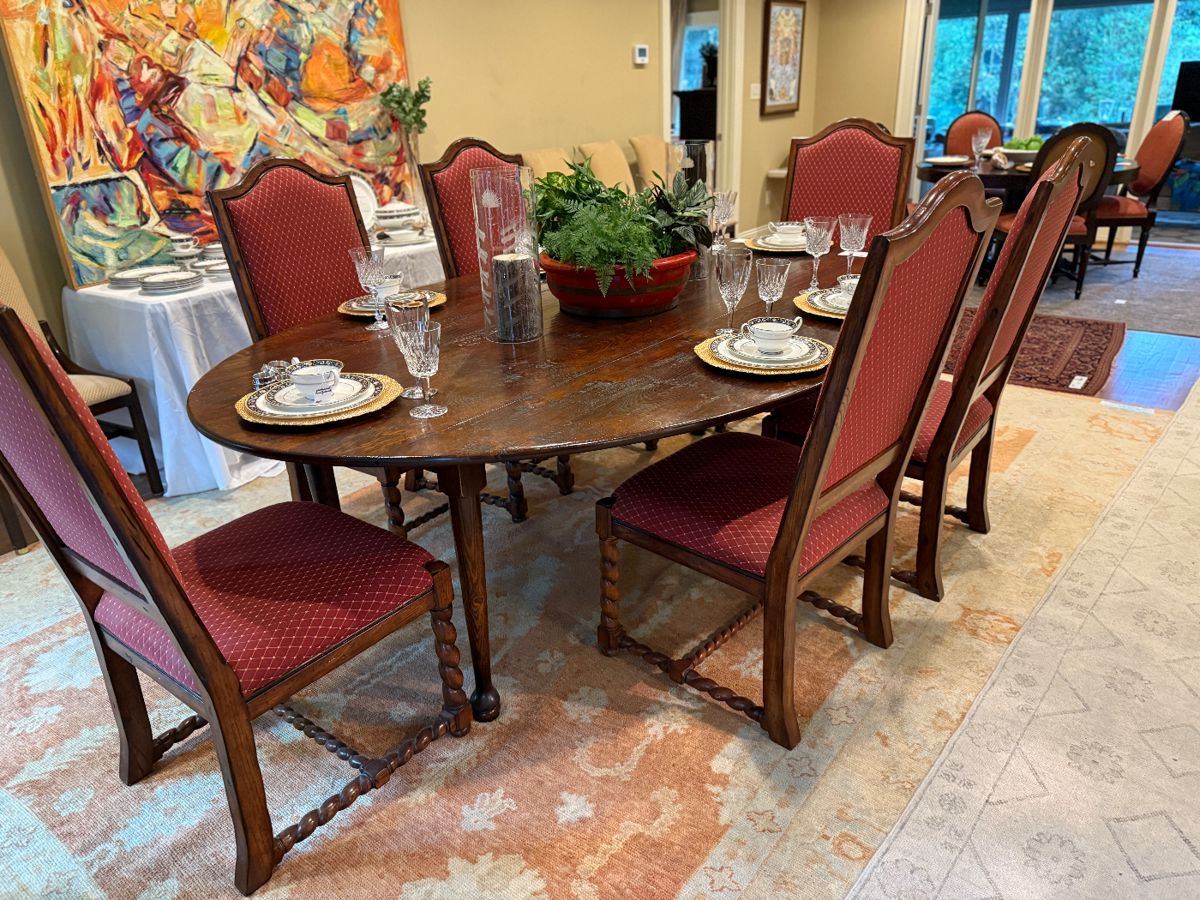 Lots of sterling Huge pair of sterling candelabras 12 pc place setting of Reed & Barton Sterling flatware Antique English furniture Antique pine furniture Irish Wake Table Sterling vases from 6” to 14” Bedroom suit from Restoration Hardware 4 poster Queen size bed 14k gold jewelry Tiffany watch Tom Jones Pottery Lots of beautiful rugs! Garage full of garage stuff! Pair of Crate & Barrel slipcovered sleeper loveseats Antique Tea Box Waterford Lizmore crystal Outdoor vintage iron patio furniture snd SO MUCH MORE!