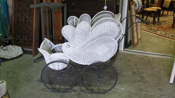 This sale is filled with interesting and afforable items from various estates. Come get incredible bargins for your home or your resale business! The door opens at eight oclock; come have a cup of coffee as you shop and take advantage of outstanding bargins; all items are priced to sell! In this memorable estate sale, there are countless smalls, set of dining room chairs, wicker chaise, antique bamboo items, great brass and iron bed, vintage costume jewelry, Queen Ann table and four chairs,two neutral upholstered sofas, small tables, odd chairs, lamps, floor lamp, outstanding wicker baby buggy, great small table...