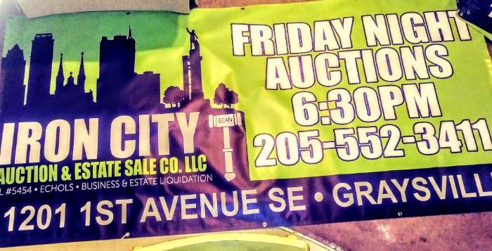 Hello everyone thanks for taking time and reading this add. On behalf of Iron City and its crew we would like to invite you out to our new AUCTION HOUSE!! Starting Feb 1st at 1201 1st Ave S.E. Graysville Al. 35073 Doors will open at 5:30 Auction will start at 6:30 We will be liquidating an Birmingham Estate. There will be prizes and drawings. Please come out and help us celebrate with IRON CITY AUCTIONand ESTATE SALE COMPANY in its GRAND OPENING. HOPE TO SEE EVERYONE THERE Any questions call Steve at 205 552 3411