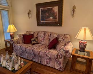 This beautiful home is filled with a wide variety of items sure to interest everyone! Featured furnishings include a gently used leather sectional with recliner, a leather chair, and quality oak furniture, including a dining room table with chairs.
