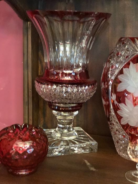 Antique and Glass Collectors dream Sale! Large selection of glassware including the following: Depression (pink, green, blue, amber, red and black) various patterns, Viking, Fostoria, Fenton, Leaded Crystal, Nippon, Indiana, Carnival, Morano, Hazel Atlas, Limoges, Milk, Candlewick, Tiffany, Note: I’m sure I’m forgetting to mention a few others!, Civil war era rope snare drum Huge selection of tea cups, saucers and tea pots Vintage & antique clocks Antique bedroom suite (marble top dresser and nightstand) Queen bedroom suite (chest and nightstand) Beautiful dining room table (seats 8) Asian pottery and art Vintage China cabinet Antique baby cradle Primitive quilting rack...