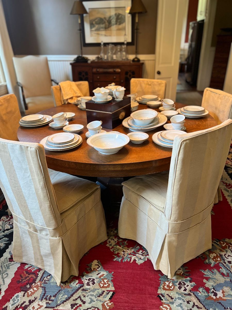 SALE INCLUDES : HOUSE FULL OF ANTIQUES AND DECORATOR ACCESSORIES, SISAL RUGS THROUGHOUT THE HOUSE, ROUND OAK DINING TABLE WITH 3 LEAVES-SEATS 10, ANTIQUE OAK BUFFET, CURVED GLASS CHINA CABINET, WATERFORD LISMORE STEMWARE, NORITAKE CHINA, STERLING AND SILVER PLATE ACCESSORIES, KITCHEN ITEMS, TAYLOR KING CUSTOM CLUB CHAIRS AND SOFA, CISCO HOME SLIPCOVERED SOFA, CARVED FOUR POSTER QUEEN SIZE BED, MAHOGANY ARMOIRE, ANTIQUE CHEVAL MIRROR, TWIN SIZE TRUNDLE BED, ANTIQUE CARVED WALNUT FULL SIZE BED, HUGE ASSORTMENT OF BOOKS, ASIAN BAR, DECORATIVE DRAFTING TABLE, LAMPS, COLLECTIBLES, ASSORTMENT OF HUNTING AND SPORTING GOODS BY FILSON, ORVIS AND PATAGONIA, PAIR OF BLACK WINGBACK...