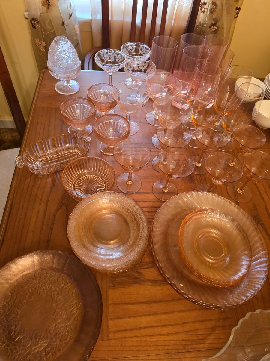 Depression glass, pyrex, Corningware, crystal, cast iron skillets, cast iron pots, records, vintage radios, vintage stereos, vintage cameras, jewelry, salt & pepper shakers, refrigerator, piano, Christmas decorations, ornaments, outdoor swing, garden tools.