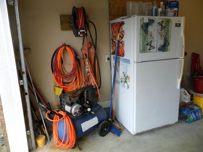 AIR COMPRESSOR AIR HOSES AIR HOSE REEL EXTENSION CORDS REFRIGERATOR TABLE SAW CHOP SAW 2 VACUUMS FLOOR FAN VARIOUS ELECTRICAL TOOLS 2 - 5 SHELF CABINET S WITH CONTENTS VARIOUS AIR TOOLS WITH NAILS VARIOUS DRY WALL TOOLS CEMENT TROWELS CAULK GUNS PAINT BRUSHES AND ROLLERS RED TOOL CABINET WITH TOOLS YELLOW BINS WITH NUTS & BOLTS SEVERAL TOOLS USED TO REBIULD SMALL BLOCK CHEVY ENGINE AND CHEVY TRUCK 2- 5 LEVEL METAL SHELVES CARPENTORS TOOLS HVAC TOOLS AND EQUIP. FOLDABLE ENGINE STAND 5 PIECE WHITE OAK ENTERTAINMENT CENTER NOT THE CONTENTS 350 PLUS DVD’S AND CABINETS DINNING ROOM TABLE...