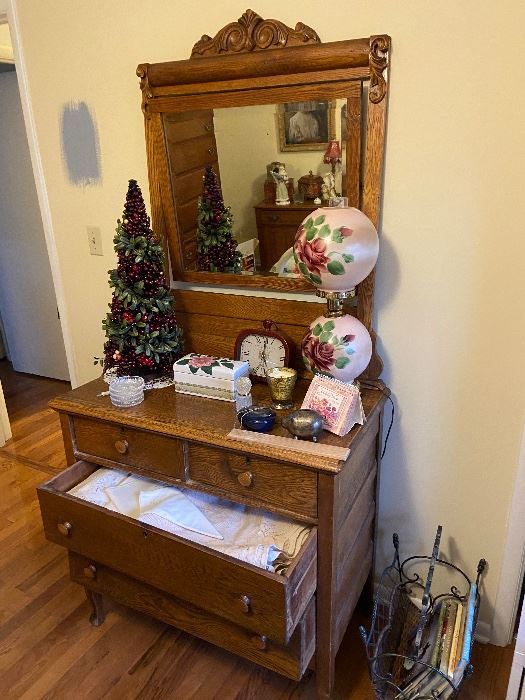 This is a clean sale. We have a poster bed with dresser and nightstand, white iron bed, antique dresser, high boy, collection of Byers’ Choice Carolers, Amway cookware, quilts, afghans, tanning bed, Cedar wardrobe, flower arrangements, Longaberger baskets, round kitchen table with four chairs, large collection of Christmas items, tons of glassware, green depression glass, concrete pots, concrete benches, and so much more. This is a sale you don’t want to miss.