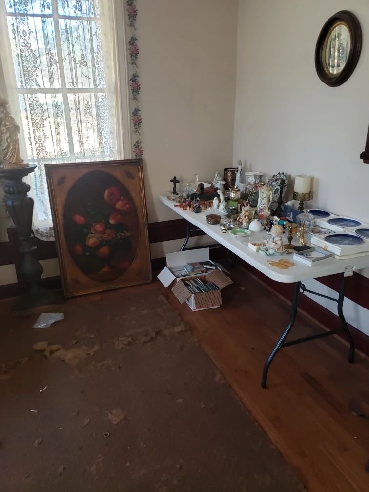 Log cabin, Chairs, tables, China, glassware, crystal, furniture, iron beds, wood bed, dressers, China cabinets, silverware, Christmas decor, antique paintings, tools...