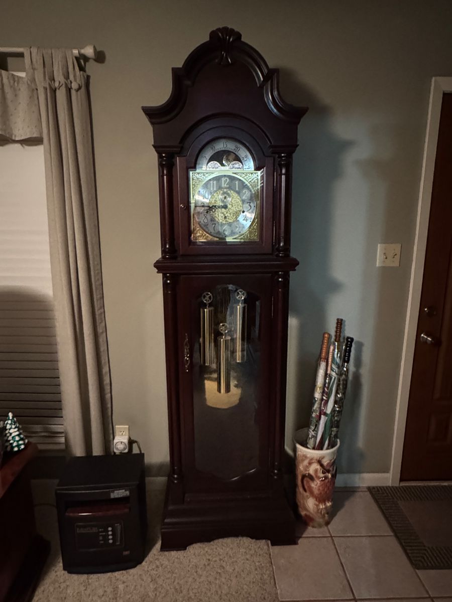 Emperor Grandfather Clock, Seiko Melodies In Motion Wall Clock, Solid Wood Sideboard, Cherry Side Tables Set Of 2, Solid Wood Bookcases Set Of 2, Large Office Armoire, Vintage Rocking Chair, Crock Pots, Kitchenaid Mixer, Rival Food Slicer, Lateral File Cabinet, Oak Dining Table W/Leaf & 6 Chairs, Solid Wood Kitchen Hutch, Corning Ware Blue Cornflower, Corning Ware Spice Of Life, Pyrex FireKing Corning Ware, Corning Ware French White Bakeware, Stoneware, Baker’s Rack, GE Refrigerator, Whirlpool Duet Dryer, Water Filtration System, LA-Z-BOY Lift Chair, Ashley Furniture Electric Recliner, Ashley Breegin Side Table, Silvertone Voice Of Music Reel-To-Reel, Zenith Allegro Console Stereo,...