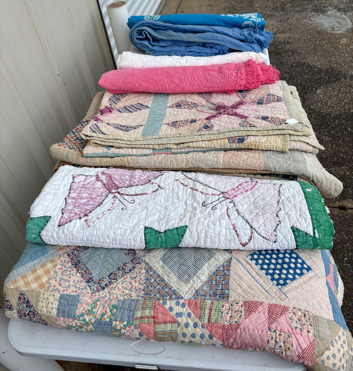 This estate contains a large collection of pottery by various artists. Also there is lots of Pyrex, Corning-ware, Revereware and Faberware cookware, Pampered Chef, Tupperware, cast iron, records, quilts and linens, Roseville and Hull pieces, artwork, and much more.