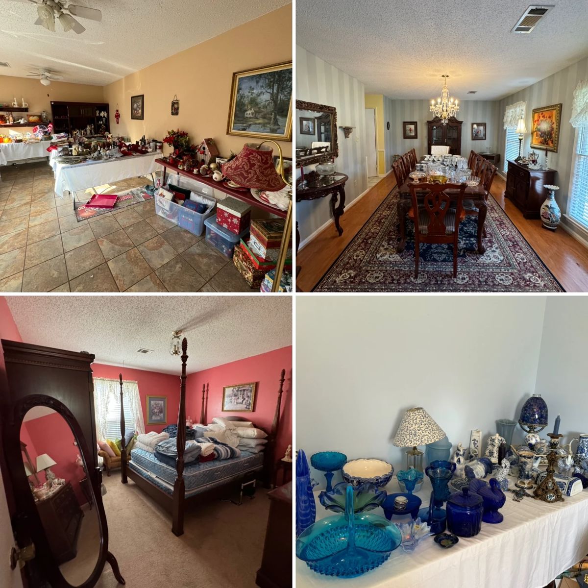 This is a FULL HOUSE estate sale! Three bedrooms, living room, kitchen, dining room, rec room, lanai, and a full garage! This sale includes a ton of furniture, a beautiful collection of blue & white dishes & glassware, Asian, Italian, and English porcelain, UA collectibles, seasonal decor, a FULL closet for both men & women and so much more!