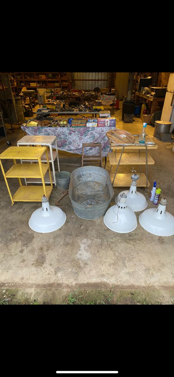 Big shop with tools, scrap items, old refrigerators, huge fan, and other miscellaneous items. Corning ware, correlle ware, items from Japan, lots of material, craft paint, wood working items, marble chess set, computer items, brand new Pier One Import wicker chair, and much more.