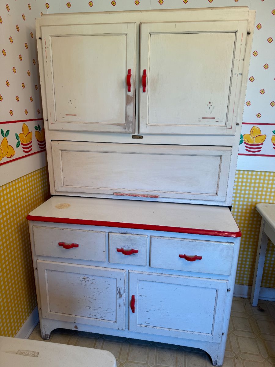 A vintage lovers DREAM sale. This moving sale houses a collection from many decades. Photos cannot capture all the vintage fun at this home. Special focus on 40s/50s kitchen/kitsch/ collectibles and primitives including two kitchen glass front cabinets, a Hoosier cabinet, and porcelain top table. Antique smalls: pottery, art, deco items. Pigs of all types. Antique child’s chairs. Chippy blue mantle. Antique tractor plow with seat. Old metal chairs. Antique books, silver, glass. Fiesta and Metlox colorstax. New tabletop oven. Washer/dryer pair. Chest freezer. Nice side by side refrigerator. GREAT holiday decor including handmade stockings, an aluminum tree, boxes of...