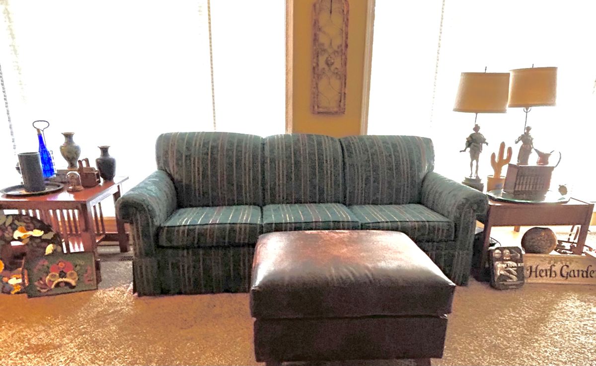 Couch, end tables, outdoor furniture, books, games, Christmas decor, art supplies, pictures, kitchen items, Pyrex, serving dishes, utensils, pots and pans, glasses, Tupperware and more. Recliners, dining room furniture, tools, washer and dryer and more.