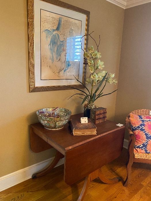 Framed Art, including signed print by Leroy Neiman Sofa, armchairs, dining sets, occasional tables, desks, office chairs, pottery barn queen bed with mattress and box spring, pottery barn nightstands, other misc. furniture antiques and collectibles, including McCarty Pottery, sterling silver, and assortment of fine and costume jewelry washer and dryer, super nice refrigerator womens and mens clothing and shoes, assorted bathroom items, toiletries, and bougie bath products Office supplies, tons of storage items from the container store, lots of paper products, cards, gift wrap kitchen items, countertop toaster oven, instapot, traditional pots and pans, gadgets, plates and flatware, fine china...