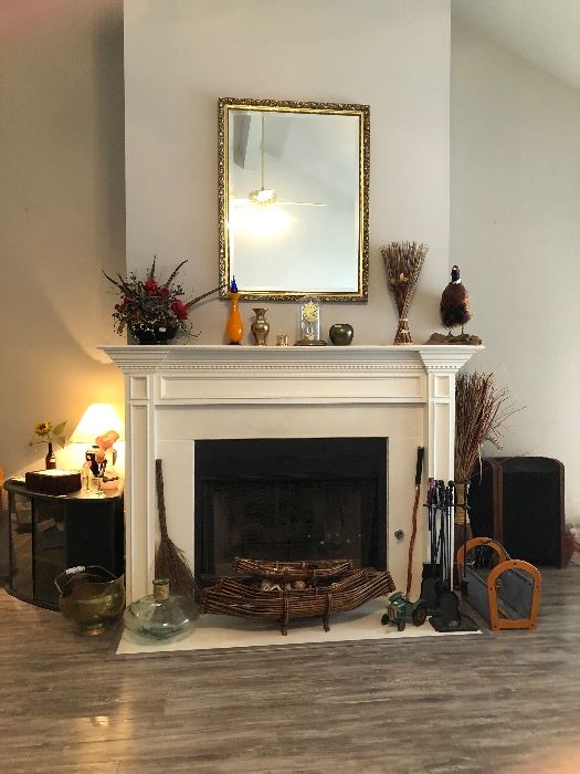 Sofa, leather chairs with ottomans, antique glass front bookcase, wrought iron and glass coffee table and end table. Gold frame beveled mirror, art deco vases, Dining room table and chairs, glass front china cabinet and drop leaf desk, many nice lamps, lots of fostoria, cut glass, china, some Desert Rose pieces, Vintage porcelian top table, small kitchen appliances, pots and pans, food, lots of cleaning supplies, Cherry French Provencial full size bedroom suit, Thomasville 5 piece bedroom suit with like new queen size mattress and box springs, Vizio flatscreen TV, Bose home speaker system, Epicure speakers, stereo equipment, Ralph Lauren...