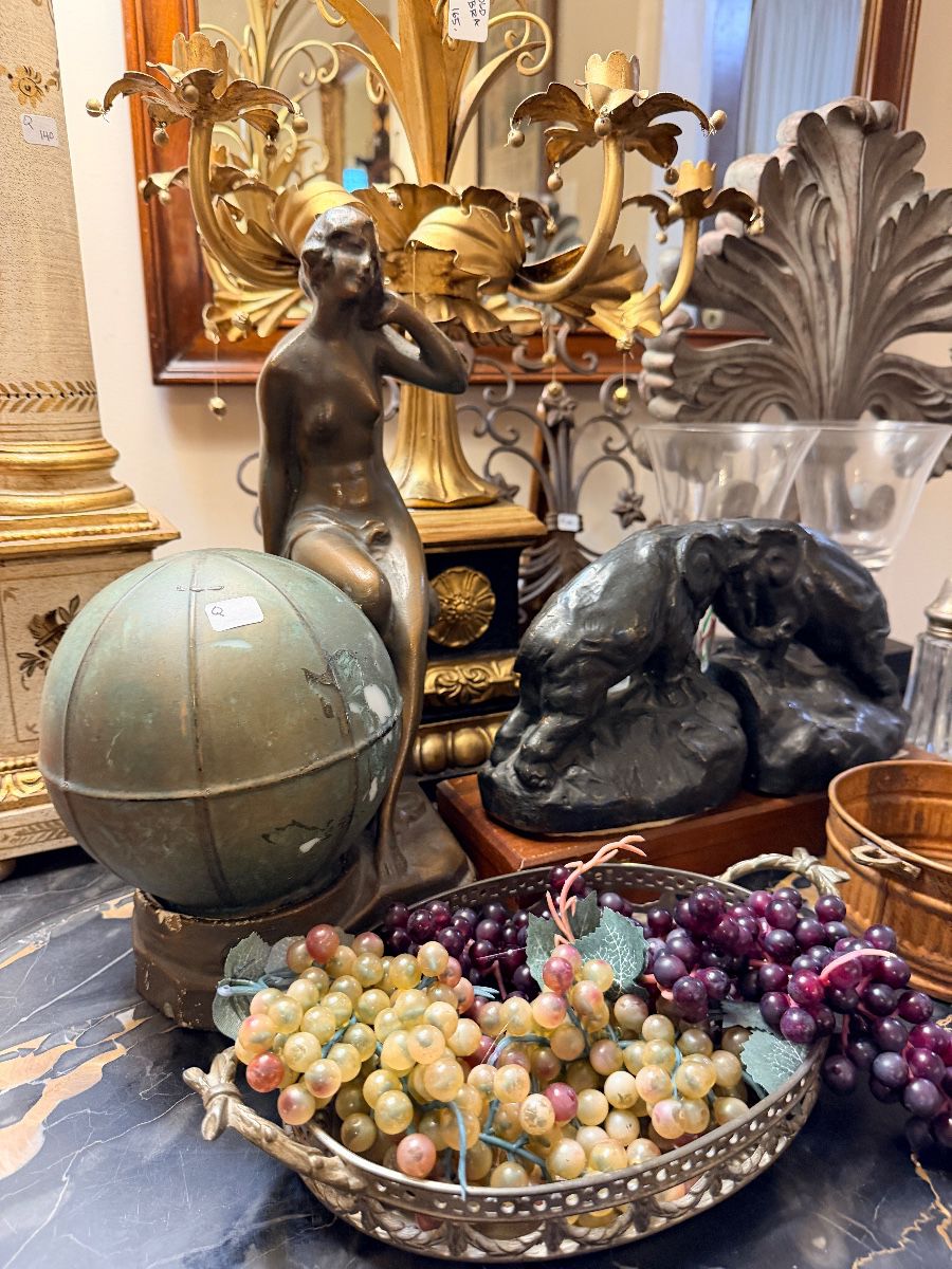 This Sale has something for everyone. Sale includes: Antique English Dining Table and Buffet, Two Beautiful Writing Desks, Antique and Vintage Wooden Side Chairs, Upholstered Arm Chairs, Wonderful Area Rugs, Round Maple Coffee Table and Glass Top Coffee Table, A Remarkable Rounded Vintage Sectional in original custom fabric, Rolling Kitchen Cart, Samsung Refrigerator, Washer and Dryer, Several Antique Chests of Drawers, Vintage Wooden Plant Stands, A Civil War Era marble Top Hall Table, Bar Cart, Two Console Tables, A great assortment of table lamps, A large presentation of Original local art, Gold Wall Mirrors and wall decor, window treatments, Several...