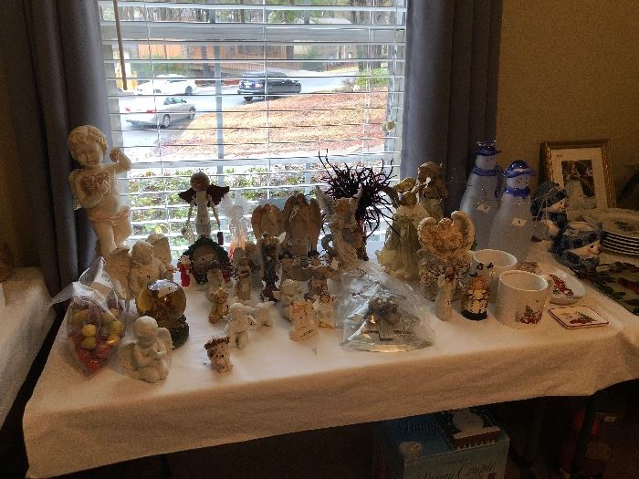 Double reclining loveseat, upholstered couch, matching coffee table, end tables and sofa table. Entertainment center, secretary, coffee table with lift top, lamps, Desert Rose Franciscan china and crystal. Doll Collection, lots of small appliances, Correll dishes, china, everyday glasses and kitchenware, copper pots and pans, kitchen table and chairs with extra leaf, Rattan bakers rack, Artwork, Seiko clocks, lots of holiday items, bric-a-brac, 2 large bedroom suites, decorative bedding, lots of decorative pillows, linens and towels, pillows, fax/copier machine, picture frames, fireplace mantle, CD's, DVD's and albums, Men's (4xl) and women’s clothes