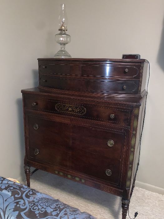 The house is filled with wonderful modern furniture as well as vintage items in great condition plus there's a workshop out back. Furniture consists of a nice Italsofa leather loveseat with matching chair and ottoman; Clayton Marcus fabric sofa in immaculate condition; formal dining table with 8 chairs, Secretary desk by Jasper Cabinet Company; glass and metal coffee and end tables, a pair of brass Stiffel lamps; vintage Drexel dresser and night stand, queen size bed with matching nightstand (purchased recently from Hank's and only used for a couple of months); and a gorgeous antique chest on chest. Lots of...