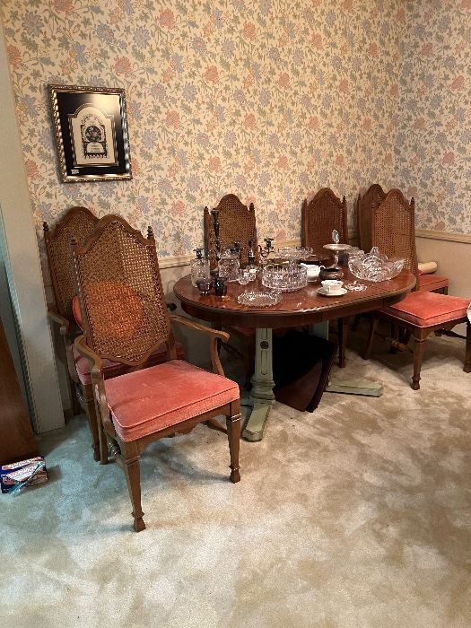 Fanstastic sale in Leawood Vintage Sherrill sofa, Mid Century Modern Dining Room table with six chairs. Antique table that converts into a chair. Antique side tables, mirrors, two oak armoires, twin bed, sewing machine cabinets. 1970's table with four chairs, vintage breakfast table with four chairs, recliner, two office chairs, computer cabinet, computer, metal file cabinet Retro sleeper sofa, retro side chair, like new lift chair, 43 inch Insignia TV, Rocking chairs, wash stand, antique chest, vintage clothing, hats, mink, lots of wonderful vintage linens, lots of Men's Polo shirts Drexel Bedroom set (chest, dresser, two bedside tables and full...