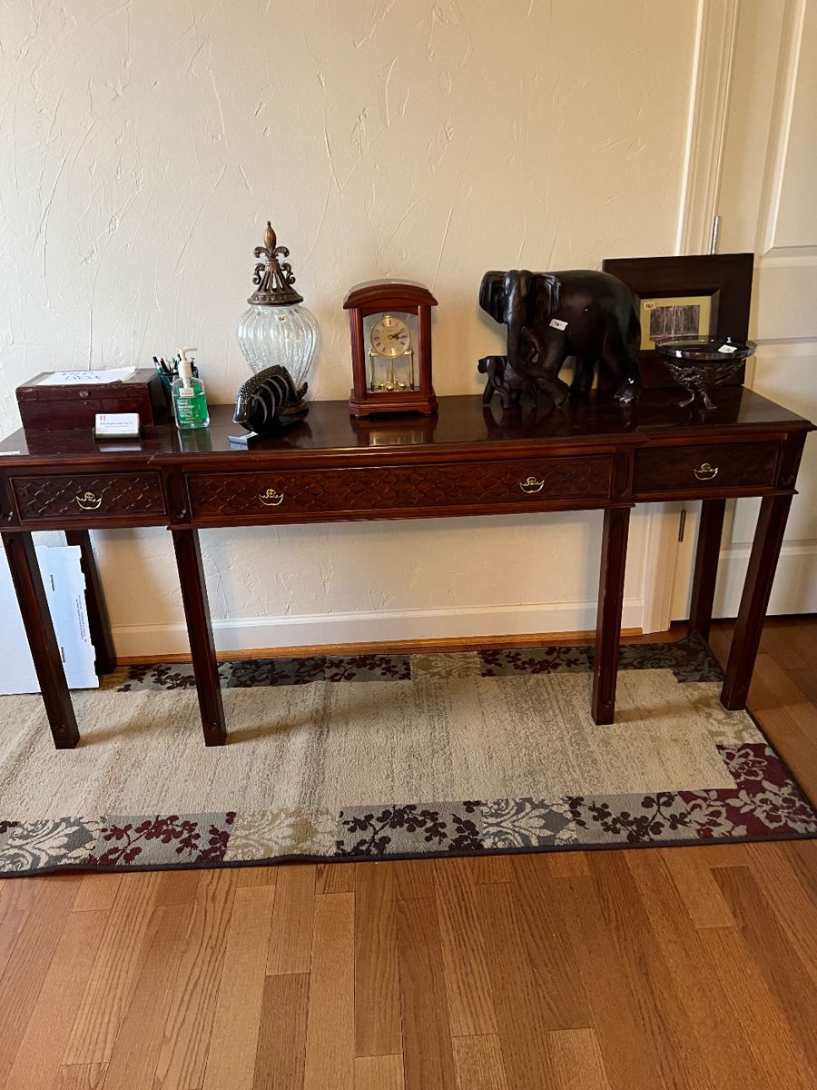 Wonderful sale off Breckenridge Drive. This is a wood worker's dream shop. Lets start inside the house first! Library table, wing chairs, side tables, dining room table and 6 chairs, china cabinet, nest of tables, pedestals, leather wing chair, floor lamps and lamps, 3 piece sofa sectional, lots of art deco pieces, miscellaneous chairs, African masks and wall artwork. Kitchen items, pots and pans, small appliances, corning ware, rolling cart Kenmore upright large freezer and Kenmore large refrigerator Mikasa black tie china, Lenox stemware, Rose point glassware, Spode Christmas serving pieces, Waterford, Bathroom items, Holiday items two drop front desks,...