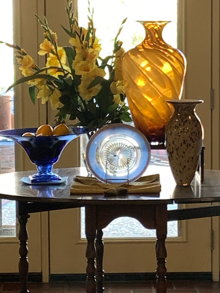This is a wonderful sale of precious items collected over many years by a discerning collector. This sale features: Two Sofas, several upholstered armchairs, ottomans, rocker-recliners, a beautiful China & Curio Secretary Cabinet, marvelous antique. Locks including a German Cuckoo Clock offered in as is condition, a stunning collection of Waterford Crystal cut glass bowls, candle sticks, a rare punch pour, decor and more, wall art, rugs, home decor and floral, remarkable offering of blue and white ceramic and Blue Willow China Set, Asian vases and artwork, antique bronze pieces, Roseville pot, Chinese display stands, side tables and plant stands,...