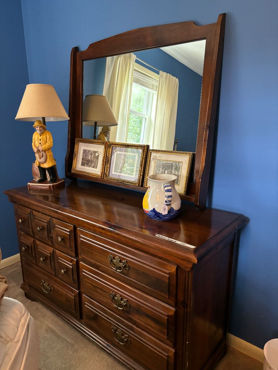 Contents of a beautiful Lakewood home, contemporary suede sofa, pair of occasional chairs, round dining table with ebony finish and upholstered parsons chairs, iron bed, like new mattress, dresser, upholstered chair and a half, cradle, antique child’s chair, tea chart, blanket chest, bar stools, kitchen and household items, awesome set of China, silverplate, crystal, decanters, bar ware, artwork, sunroom and patio furniture, lamps, neat vintage vinyl LP collection, Beatles memorabilia, vintage Star Wars collectibles, linens, all kinds of collectibles, Baldwin Spinet piano in ebony finish, vintage ceramic Christmas trees, and much more! UP TO 50% OFF TODAY!