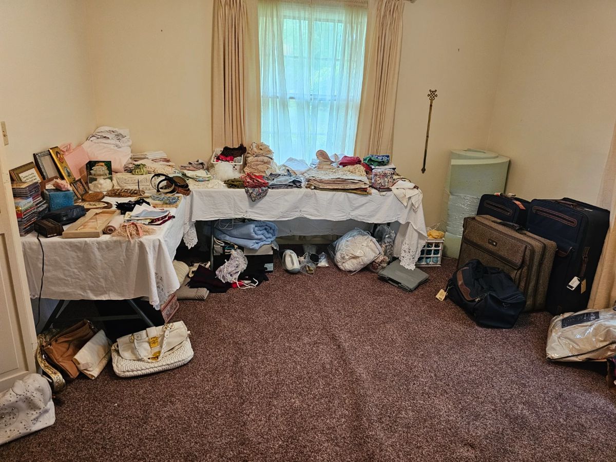 We still have plenty left here from the glitz and glam of the ladies attire to the antique plow, there is bound to be something that attracts everyone. Pyrex, little silver plated items, lead Crystal also Bleikristall and Ceska, cookware, Wizard Precision Sewing Machine, collections with certificates, Smokey River Walnut Valley Dulcimer, binoculars, Verizon Hotspot, Vintage Drinking bird toy, vint chandelier, Small World Rhythm clock, modern couch and love seat, Massoud clawfeet wingback sitting chair, RCA console TV, Magnavox stereo/turntable console, Anchor Hocking, Corningware, bookcase, Orange velvet swivel chairs, American Drew bedroom suite, cedar chests, Tea Carts, Danbury Mint Princess...