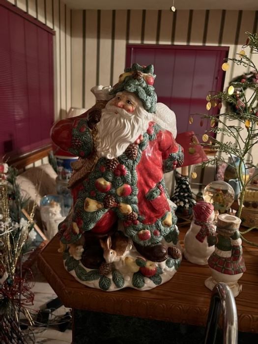 Sale includes lots of Christmas items such as Fitz & Floyd and snow village , furniture including 2 Queen beds with mattresses, 1 dresser, multiple side tables, desk, recliner, 2 rocker chairs etc.  Glassware, crystal, china, cookbooks, kitchenware, cookware, pictures, clocks, wall mirror, shoes, clothes and lots of other miscellaneous items!!!