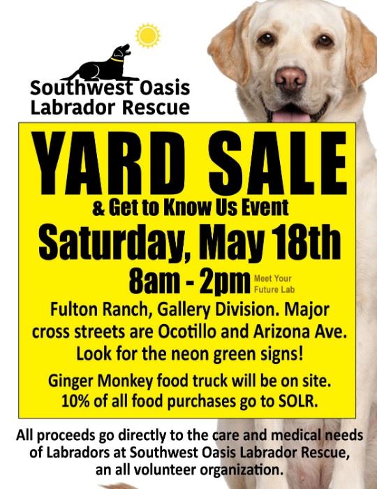 All procedes go to the Southwest Oasis Labrador Rescue!