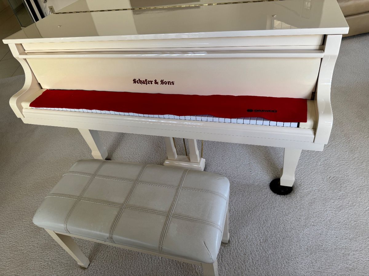 IT FEATURES A BEAUTIFUL BABY GRAND PIANO, LEATHER FURNITURE,