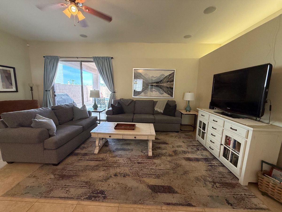 This house is beautiful and has many pieces of amazing furniture in great clean condition as well as decor and other items. Included items are: Very Nice Gray Sofa and Loveseat, Coffee Table and End Tables, White TV Console with Storage, Beautiful King Bed Suite with Dresser and Nightstands, Queen Bed, Table Lamps, Kitchen Table & 6 Chairs, DVD Player, Books, Samsung 52" TV, Two Mission Style Futon Chairs, 4 Door Bookcase Cabinet, Bar Stools, DVD's, Beautiful Office Desk with Chair, Sony Wireless Speaker, Pro-Form Rowing Machine, Schwinn Airdyne Evolution Comp Dual Action Bike, Kitchen Items, Decor, Artwork, Linens and...