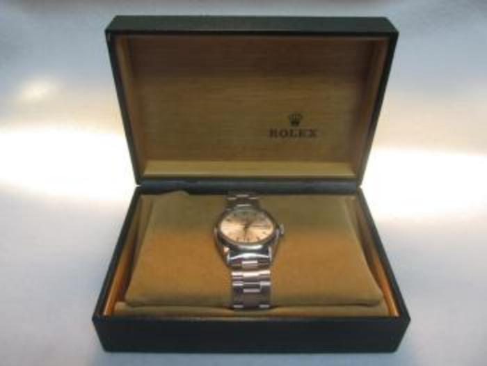 1 Authentic 1956 Rolex Oyster Perpetual Air-King Watch with Original Box, Serial Number 1135424, Model 5500 1a 14K Yellow Gold Men’s Ring with Onyx and Small Diamond 3 14K Yellow Gold Women’s Ring with Heart Shaped Diamond 5 2-Piece 14K Yellow Gold Wedding Set 6 14K White Gold Women’s Ring with Diamonds 7 10K White Gold Women’ s Ring with Diamonds 8 14K Yellow Gold Women’s Ring with Precious Stones 9 14K Yellow Gold Women’s Ring with Precious Stones 10 10K Yellow Gold Heavy Rope Chain with Cross 12 14K Yellow Gold EP Nugget Ring, Size 12 13 14K Yellow...