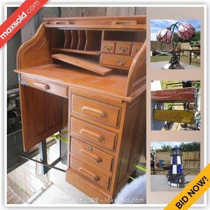 WHAT IS IN THIS AUCTION? This online auction features collectibles such as Ziggy, Waterford crystal, vintage Harley Davidson, and Noritake china, furniture such as oak roll top desk, oak curio cabinet, and vintage rocking chair, swag glass lamps, stained glass, vintage Asian tapestry, kitchenware, wall art, glassware, DVDs, CDs, Christmas decorations, winter clothing, men’s suits, pool or billiards accessories, oil lamps, power tools, hand tools, desk lamps and much more! HOW TO ACCESS THE AUCTION? Simply click here: MaxSold TO BID PLEASE REGISTER: Copy and paste this link to your browser https://maxsold.maxsold.com/register WHEN DOES THE AUCTION CLOSE? Everything will SELL...