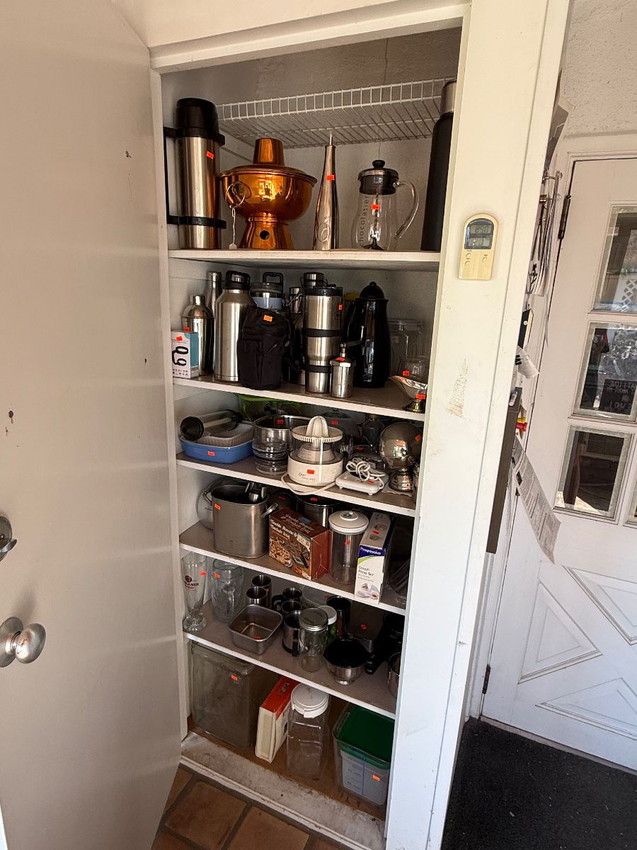 Welcome to a very eclectic sale! The owner was a hobby chef, lifelong avid recreational and competition shooter. A machinist and a member of the Tucson Cactus and Succulent Society and traveler to the Orient. Please note - NO FIREARMS PRESENT! House is full of a wide variety of merchandise relating to the interest stated above. Kitchen has some high end knives and pots and pans, along with every day cooking accessories (small appliances, pots, pans, utensils etc). Hundreds of fine cookbooks. Mid century brass glass top table with extensions. Living room consists of sofa and loveseat. Vintage Electronics including...