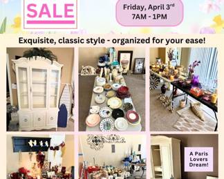 Beautiful home moving sale. 50%-75% off tagged items Saturday and Sunday.