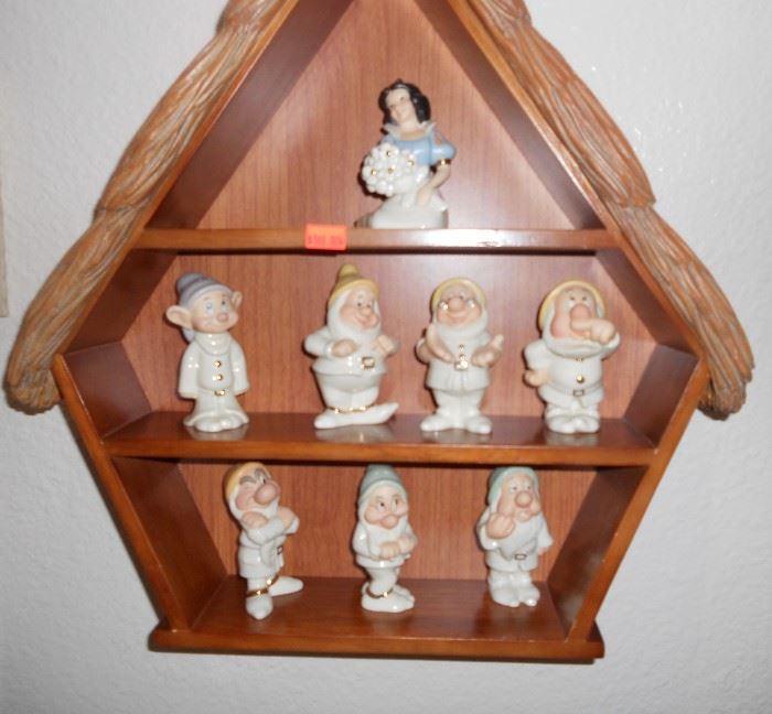 Sofa. Two swivel chairs. Chair. Coffee table; several end tables. TV/media cabinet. Matching Thomasville three-piece wall unit, dining set with six chairs and one leaf, hutch, corner curio, and side server. Corner display rack. Lighted display case. Pictures; lamps. Lenox, Fenton, Disney, Lladro, Nao and many more figurines, knick knacks, dolls, etc. Book cases. Electronics. Books. Matching Mission-styled queen bed, headboard, two night stands, and triple dresser with mirror. King bed with headboard, two night stands, triple dresser with mirror, and king bench. Jewelry chest; gobs of jewelry. Linens, towels, tableware. Sewing notions galore. Vanity stool. Kitchen set with four...